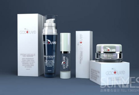 以淺藍(lán)色為主色調(diào),淺藍(lán)色使人聯(lián)想到海洋、水;外包材:采用銀卡紙+逆向UV…